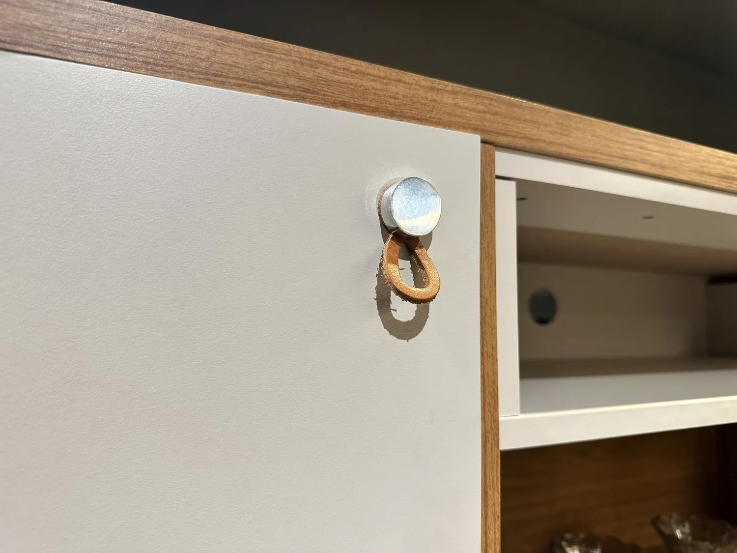– Duas portas 18 mm com dobradiças metálicas e com puxadores de couro