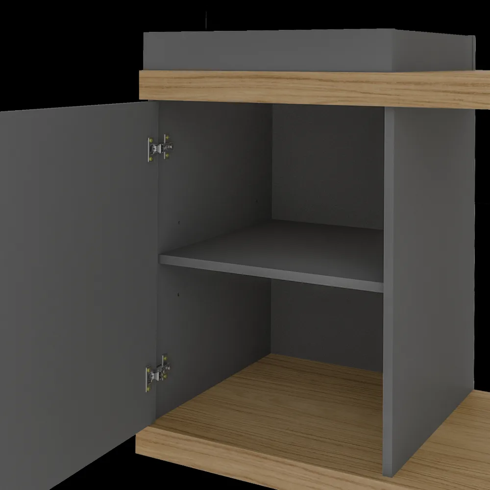 – Acabamento madeirado em pintura UV texturizada, Grafite em pintura UV acetinada, e Off White em pintura UV alto brilho