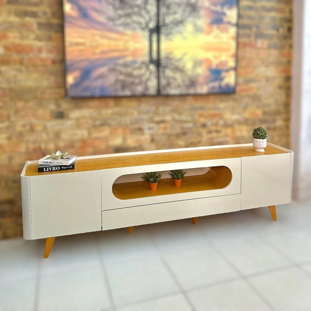 Rack Nobre 210 (Pés de Madeira) Off White/Naturale – GELIUS